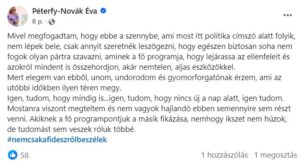 A poszt eltűnése után Péterffy-Novák Éva egy közvetkező posztban adott hangot a történtekkel kapcsolatos értetlenségének.