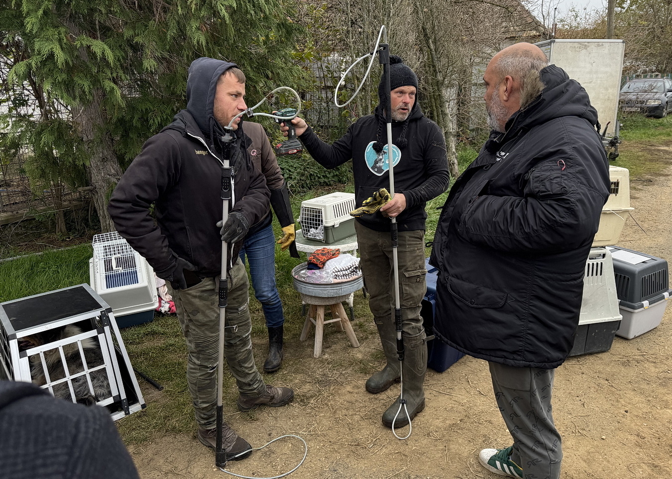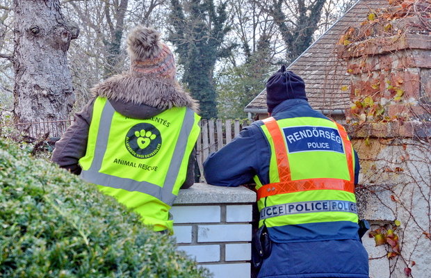 Hétfőn reggel nyolc órakor gyülekeztek az állatvédők az ország számos pontjáról két kőszegpatyi ingatlan előtt. A ház annak az osztrák nőnek a tulajdona, aki ellen körözést adtak ki, miután egy hasonló csöngei kutyamentés során mérgezést mímelt az otthonában, majd megszökött a kórházból.