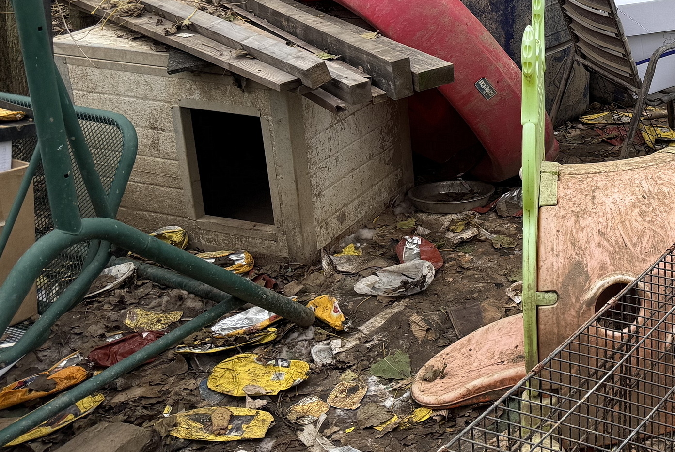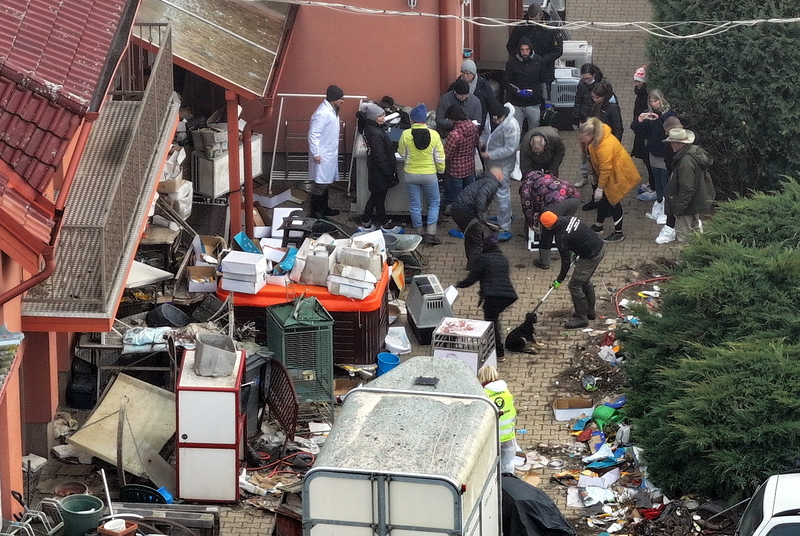 Ürülék, állati maradványok, műanyag hulladék fogadta az érkezőket, akik hamarosan megkezdték a kutyák és más állatok kimenekítését. A reggel 8-kor kezdődő állatmentés még az esti órákban is tartott.