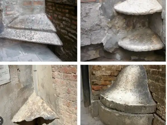 Vajon mire valók ezek a falba épített, ferde márványlapok? És vajon mi a közös ezekben a lapokban és ebben a sarokba épített, harang formájú dologban?