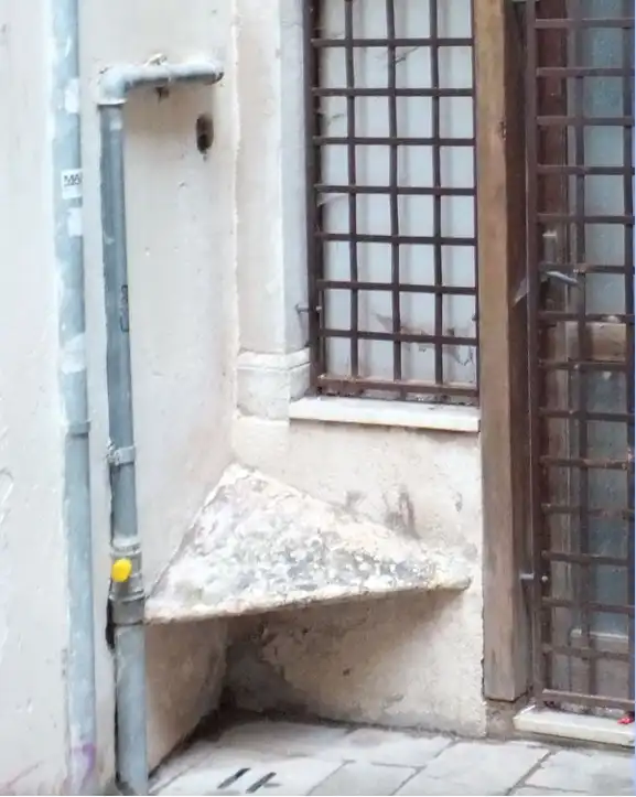Az olasz városokban, különösen Velencében, furcsa, régi „védelmi” építészet található. Ma ezek a szerkezetek megakadályozzák, hogy a hajléktalanok a házak falai mellett üljenek vagy feküdjenek.