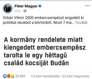 A Facebookon több bejegyzésben is azt hazudta, hogy a kormány veszélyhelyzeti rendelete miatt kiengedett moldáv embercsempész okozta a vasárnapi budai balesetet.