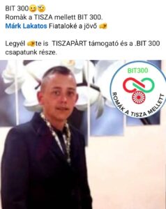 „Romák a Tisza mellett” – hirdeti Lakatos Gusztáv közösségi oldala. Mellette egy rejtélyesnek ható felirat: BIT 300.