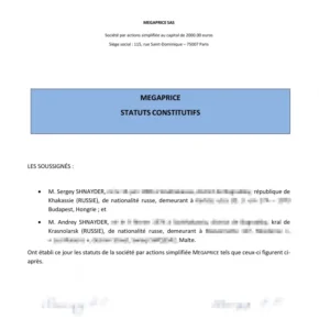 A franciaországi Mere alapító okirata – Forrás: Francia cégjegyzék / Telex