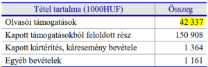 Erre a hivatalos dokumentumra hivatkozva írták meg korábban, hogy a 444 kiadója 42 millió forintnyi „olvasói támogatást” kapott.