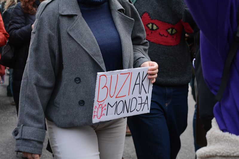Megjelent a színpadon Baranyi Krisztina, Ferencváros polgármestere, aki arra kérte a tüntetőket, hogy mindenki menjen el minden tüntetésre, írjon alá minden petíciót, tiltakozzanak, és természetesen menjenek el az MKKP Békemenetére is, melyet április 12-én akarnak megrendezni.