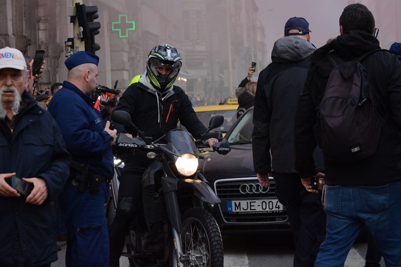 Egy autós, aki szimplán szeretett volna átjutni, neki is ment az egyik tüntetőnek, majd bemutatott neki, ezért a tüntetők elkezdték átengedni az autókat egy részen.