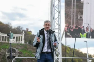Ezután már szinte felüdülés volt Lengyel Tamás színművész. Ő arról beszélt, hogy a szolidaritás összeköti az embereket, és ha szolidárisak vagyunk, képesek vagyunk együtt szembenézni a nehézségekkel, és közelebb kerülünk egy empatikusabb, igazságosabb világhoz.