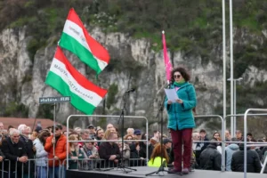Nem hiányozhatott Pankotai Lili sem, aki kijelentette, hogy Magyarország már nem hibrid rezsim, hanem diktatúra, ahol az elnyomó hatalom minden elnyomó törvényét azzal magyarázza, hogy az az emberek érdekeit szolgálja, akárcsak a kommunisták és a nácik tették egykoron.