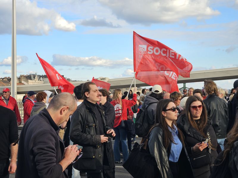 Az e heti tüntetésre már nem csak a Momentum, de a DK is jelezte részvételét, de megjelentek MSZP zászlók, és egy ember Jakab Péter pártjának zászlaját lengette.