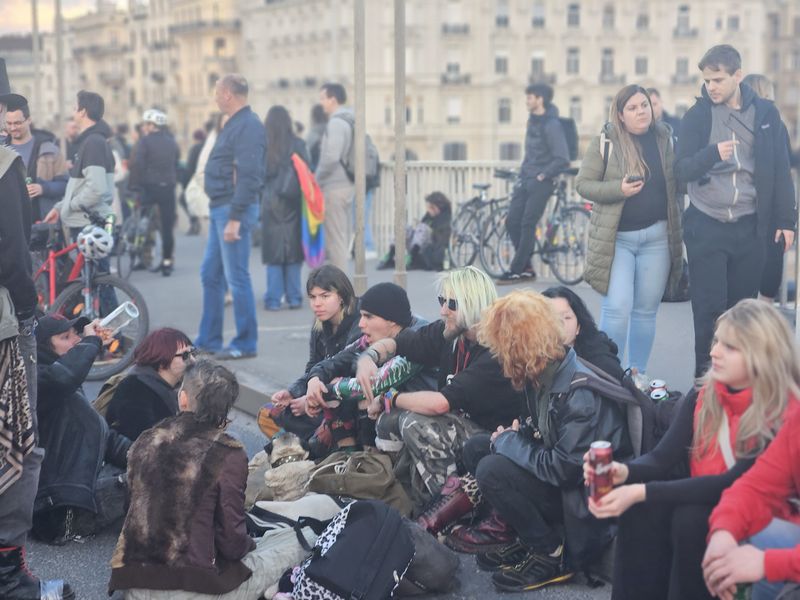 Eközben a Petőfi hídon még mindig zártak a tüntetők, és nem tudták, mi legyen, hogyan tovább, a Margit hídon már csak páran lézengtek, ők is elindultak aztán az Erzsébet híd felé, a Petőfi híd blokádjának is véget vetettek. Az Erzsébet hídon még mindig volt egy kisebb csoport, beszélgetve és zenét hallgatva. Így fordulhatott elő az a helyzet, hogy miközben a hivatalosan bejelentett tüntetés helyszínén, az Erzsébet hídon, ahol este tízig jogszerűen tiltakozhattak volna, csak pár ember maradt, míg a Szabadság hídon alternatív bulika vette kezdetét.