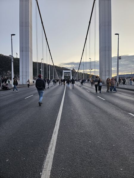 A beszédek ezzel véget is értek, Hadházy arra kérte az embereket, hogy maradjanak és beszélgessenek, ám a Momentumosok vezetésével a tömeg megindult a pesti oldal irányába. „Gyertek velünk a Szabadság hídra!” – szólították meg a hátul beszélgető, bulizgató fiatalokat, és közölték, a cél a Margit híd, a Szabadság híd és a Petőfi híd elfoglalása, tehát a tömeg egyik felét a Margit híd felé irányították.