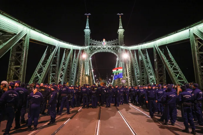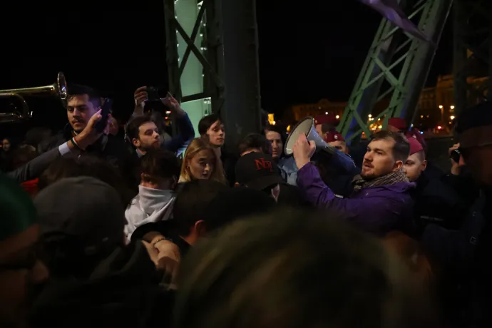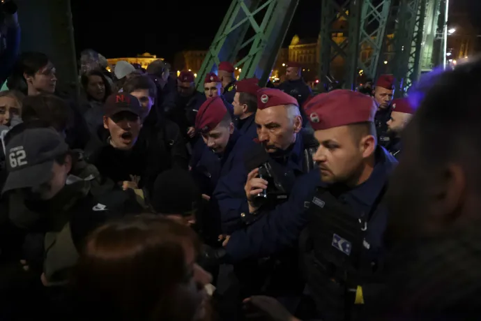 Eközben a Szabadság hídon egyre feszültebb lett a helyzet, ugyanis a rendőrök megpróbálták letolni a tüntetőket a Szabadság hídról a pesti irányba. Erre válaszul skandálás kezdődött: „Bűnözőket védtek” és „Demokráciát”.