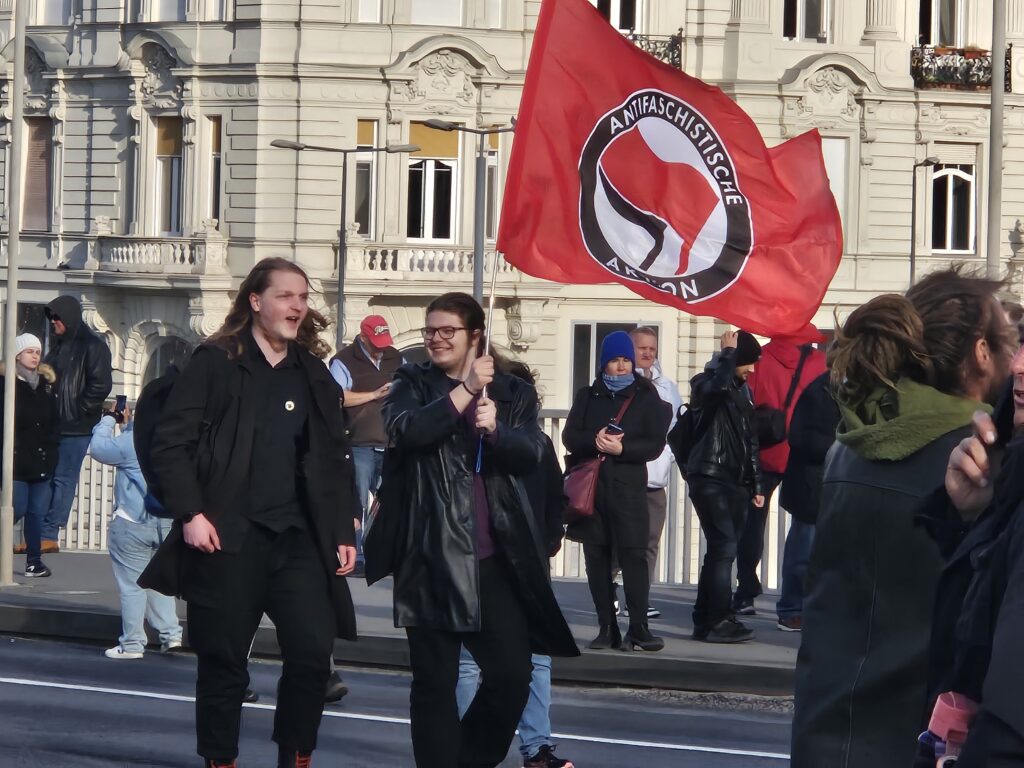 Ennek ellenére egy kisebb csoport pedig – a korábbiakban megszokott módon – kisebb tipródás és egyeztetés után elindult a Szabadság híd felé, érdekes módon a táblácskák és a készülődés ellenére most nem a Momentum, hanem Trombitás Bálint és néhány antifa meg punk fiatal vezetésével.