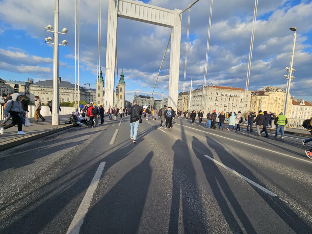 Eközben már a Momentum is unhatta magát, mert a Szabadsághíd felé vitte volna izibe a tömeget, és bár táblácskáikon több híd neve is fel volt tüntetve, és már a bevonulásukkor láthatták a demonstrálók, ki mellé kell állniuk, ha egyik vagy másik híd elfoglalásában részt akarnak venni, este nyolc felé a többi hídról nem esett szó a hangosbemondó részéről.