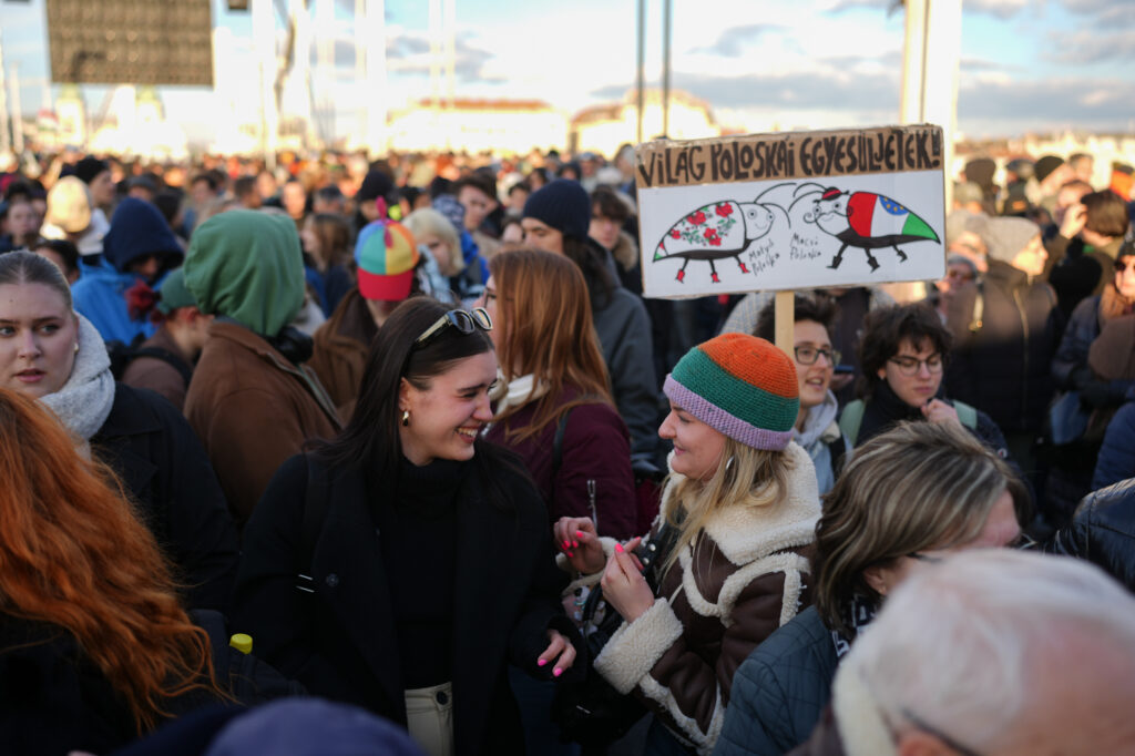 Utána egy Belgiumban tanuló magyar diák, Machac-Tóth Mia aktivista szólalt fel, aki azt mondta magáról, hogy meleg, de Magyarországon szeretne megházasodni.
