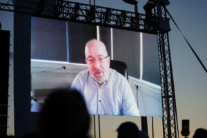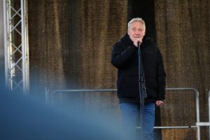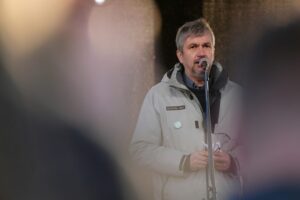 Simkó után felkonferálták Holoda Attilát, energetikai szakértőt, az Orbán-kormány korábbi államtitkárátm aki online jelentkezett be a tüntetésre, és az orosz gázról beszélt.