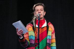 Erdei Milán, egy fiatalember is megjelent a színpadon, aki azzal kezdte: „Itt állok ma ezen a színpadon, 17 évesen. Büszke vagyok, mégis szomorú és végtelenül mérges”. Már felkonferálása is érdekes volt, ugyanis a kormány legnagyobb ellenségeként konferáltak fel, mert transz.