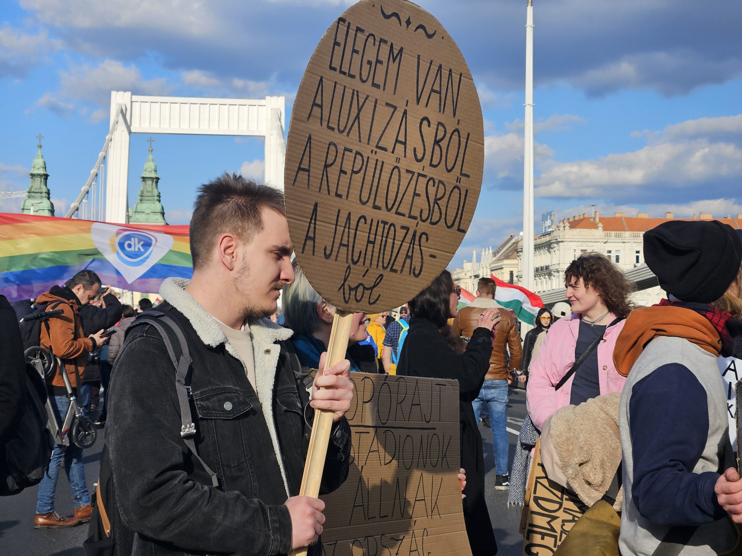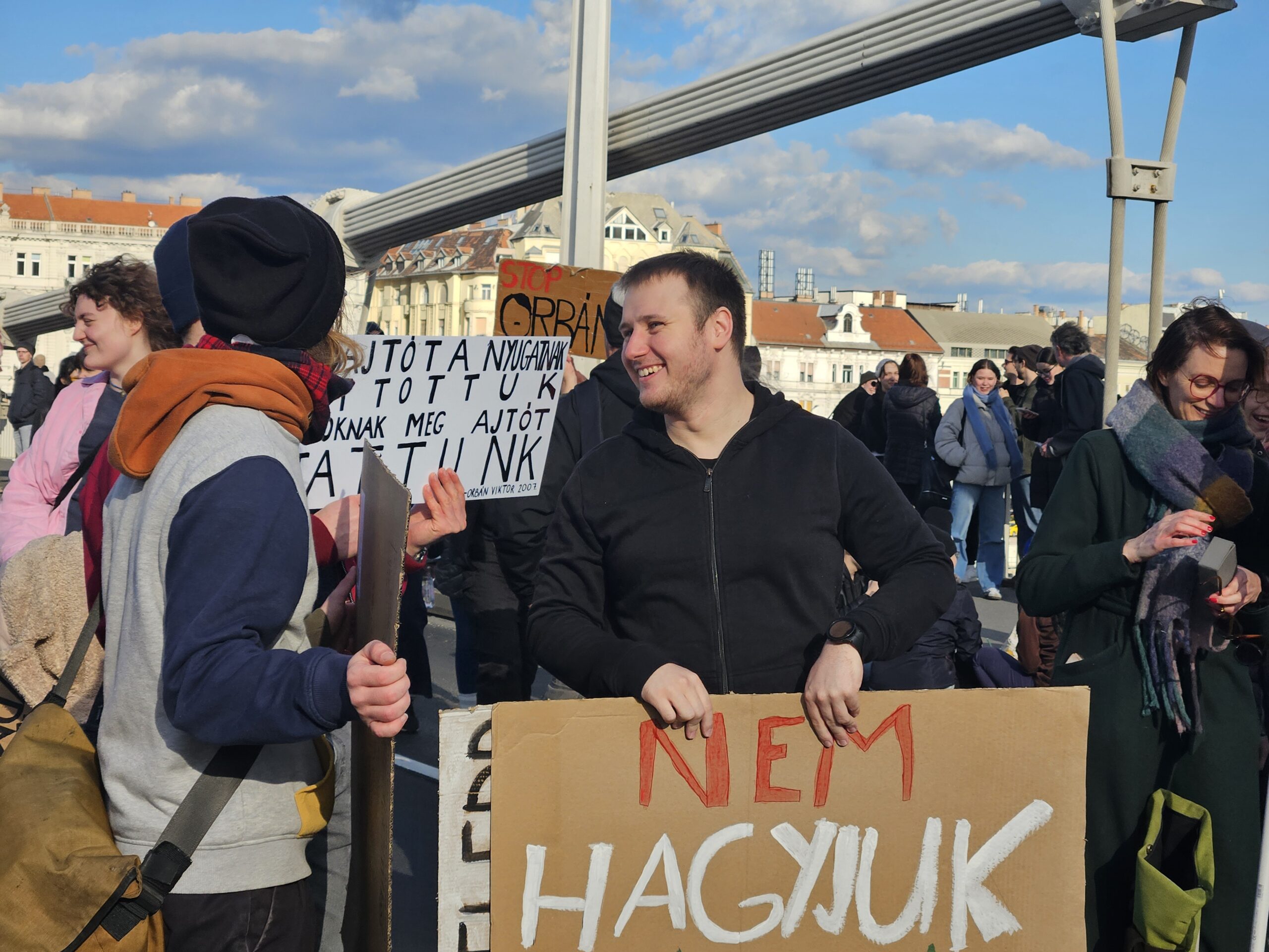 Felhívta a figyelmet arra, hogy bár nem engedélyezték a 24 órás tüntetést, a nagy hidegben és szélben 12 órát tölteni a hídon is derekas teljesítmény lesz, ennek ellenére a jövő héten már ismét 24 órára készülnek.
