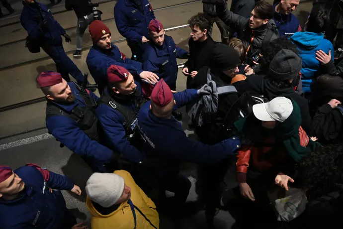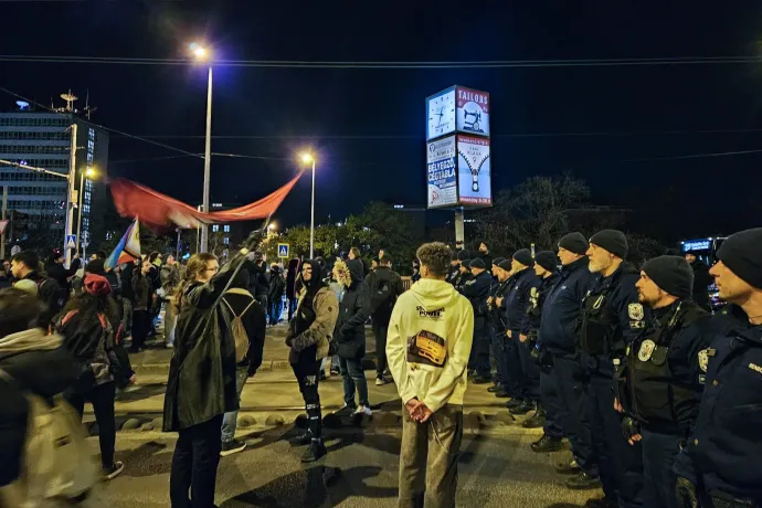 Elkezdődött a macska-egér játék a rendőrökkel, akik terelték a tüntetőket az útról, hogy a hídon haladhasson a forgalom, majd azok rendre újra elfoglalták az úttestet, ahogy a zebránál zöldre váltott a lámpa.