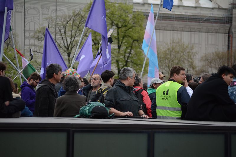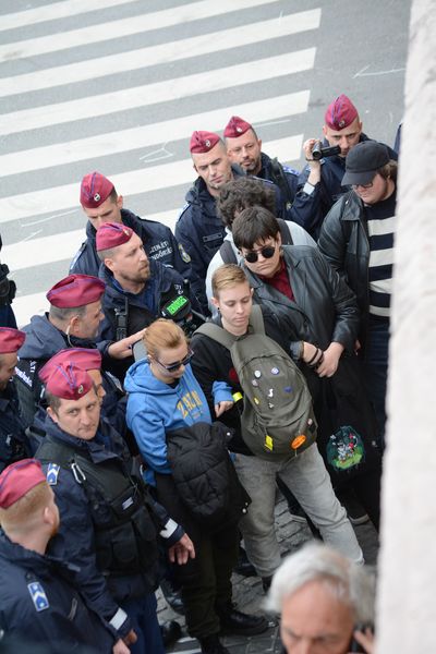 Nagyjából 20 perc után a rendőrök a mélygarázs rakpart felőli bejáratánál is elpakolták a momentumosokat az útból, és akiket elvittek a kaputól, azokat igazoltatták is. Sokan inkább felmentek és a Kossuth tér széléről, a kerítéstől követték a lent folyó eseményeket, már amíg a rendőrök hagyták. Egy idő után itt is végig rendőr sorfal állt.