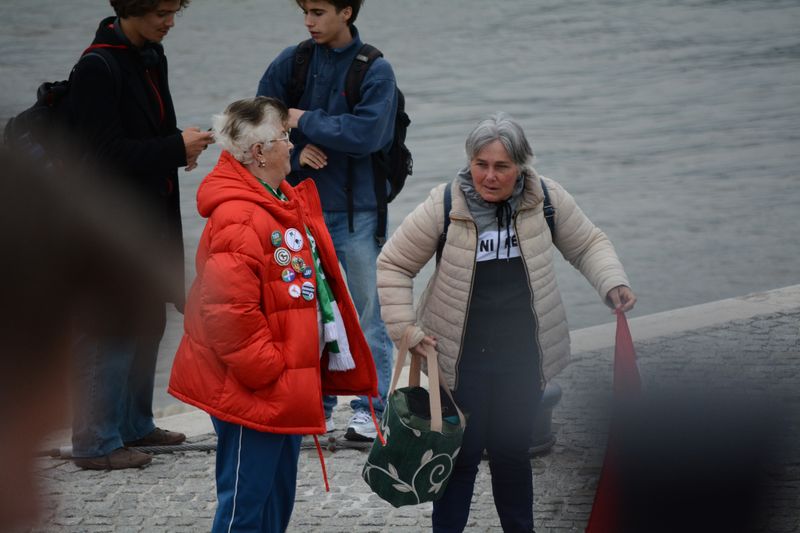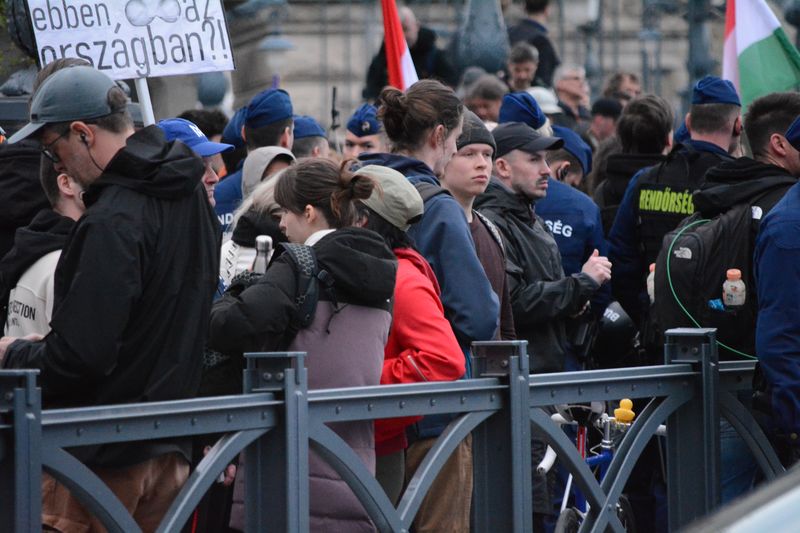 A Duna partján is többen álltak, és párszor felcsendült a „Mocskos Fidesz!”, illetve a „Hazaárulók!” skandálás.
