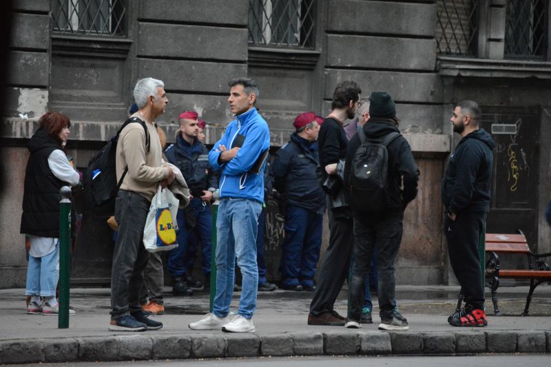 A felszólalók beszédei rendben lezajlottak, és bár a tüntetők mellett több cigány származású férfi is megjelent, ők inkább élőben közvetítették a rendezvényt, valamint messziről kiabáltak be a járdán állóknak.