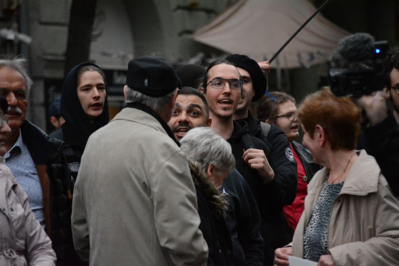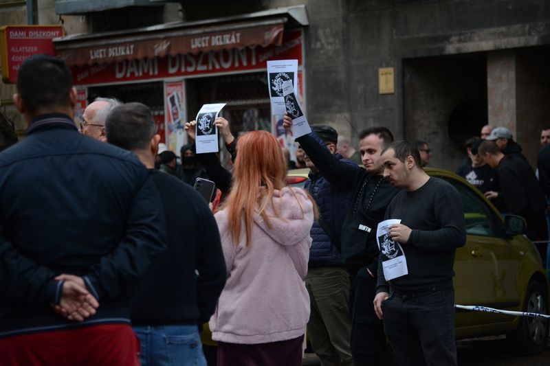 A felszólalók beszédei rendben lezajlottak, és bár a tüntetők mellett több cigány származású férfi is megjelent, ők inkább élőben közvetítették a rendezvényt, valamint messziről kiabáltak be a járdán állóknak.