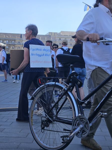 Ezek után sok sérelmet sorolt, elmondta, hogy Budapest romokban hever, a kórházak és iskolák börtönre emlékeztetnek, miközben a kokárdát olyanok hordják, akik pedofilokat mentegetnek. Közölte, hogy ő büszke akar lenni arra, hogy magyar, és itt akár élni, ezért biztatta a tüntetőket, hogy álljanak ki a jogaikért, de ne úgy, mint azok a mocskos, korrupt arisztokraták odafent.