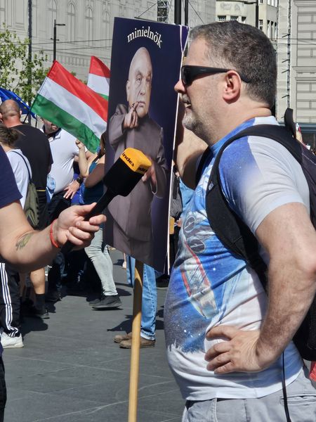 Miközben a színpadon a beszédek zajlottak, Császár Attilát, a köztelevízó ismert riporterét, aki éppen a trombitás Szabó Bálinttal akart interjút készíteni, tüntetők vették közre, köztük két zebrafigurának öltözött ember.