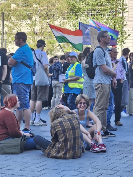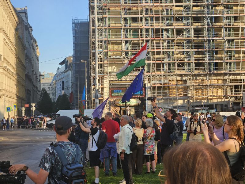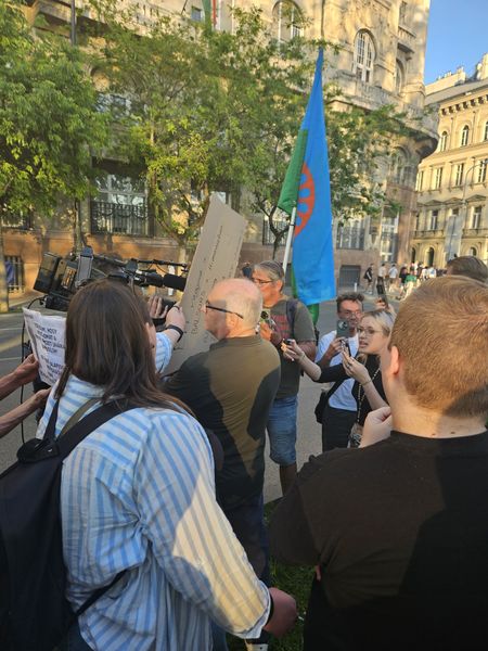 Bedő Dávid a bejárat elé állva megköszönte a tüntetők részvételét, a Lánchídon lezajlott jelenetet abszurdnak nevezte, és kiemelte, hogy az igazoltatás, amit pár perccel koraibban elszenvedtek, szinten ok arra, hogy az emberek tüntessenek. Tompos Márton az európai Magyarországot éltette ezek után.