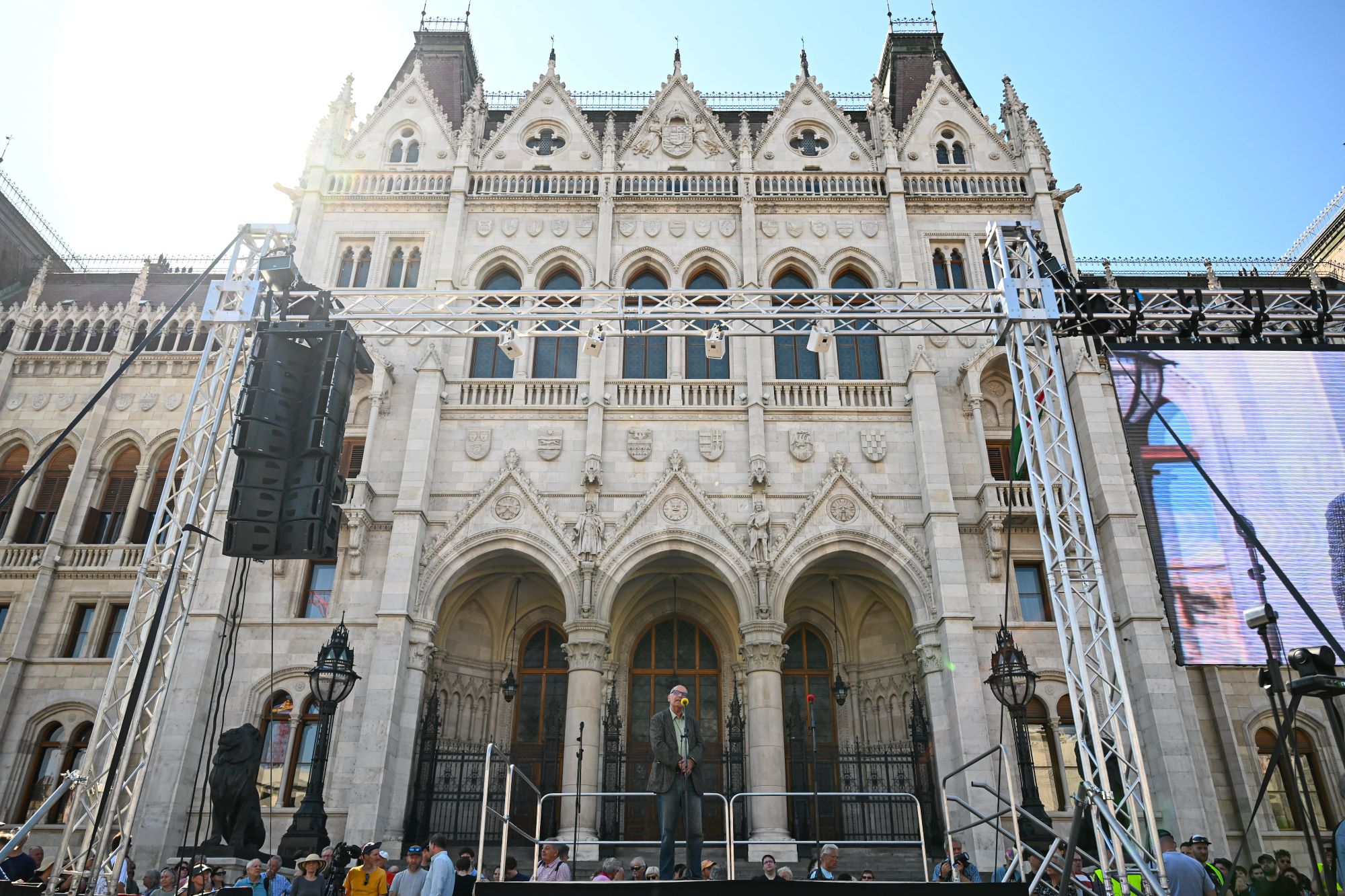 Beszélt még az Országgyűlés kiüresítéséről is, és azt mondta, itt a Parlament előtt többet nem fog tüntetni, és még egyszer elmondta, hogy jövő keddre a rendőrség engedélyezte a tüntetésüket a Ferenciek terén.