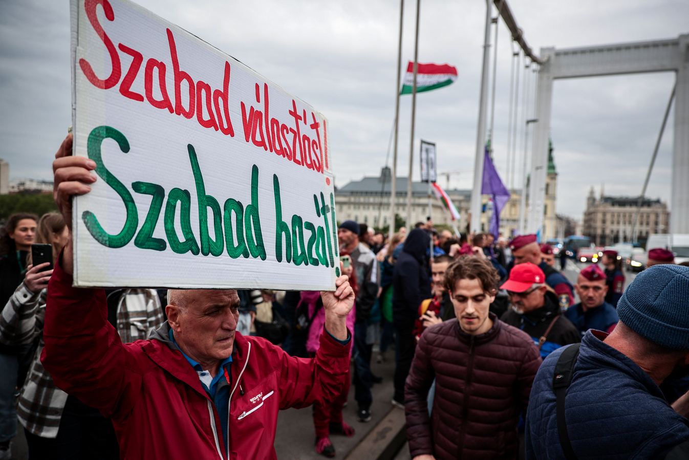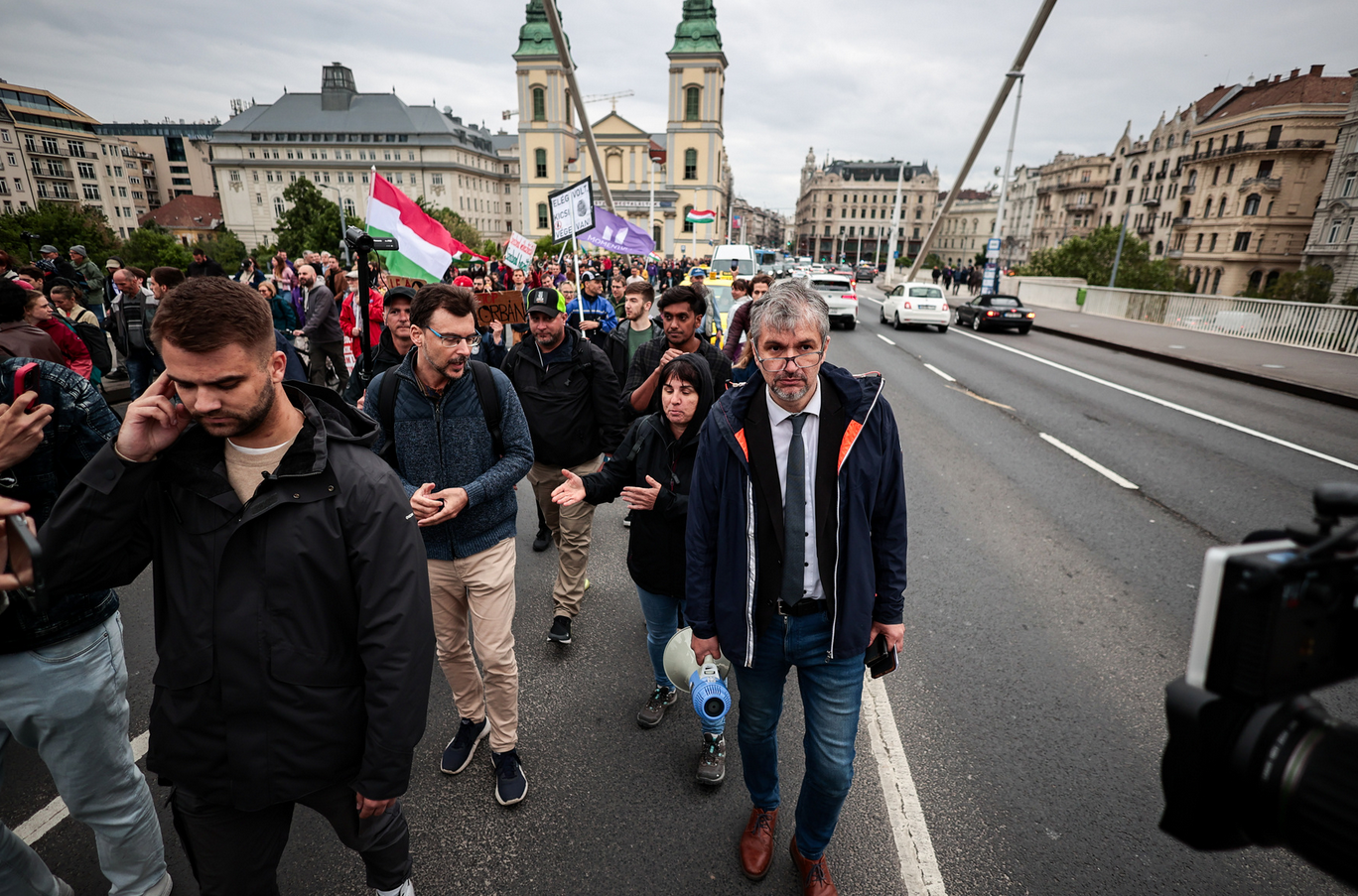 – mondta a tüntetőknek Hadházy, miközben az autós forgalmat a budai oldalról lezárták a rendőrök.