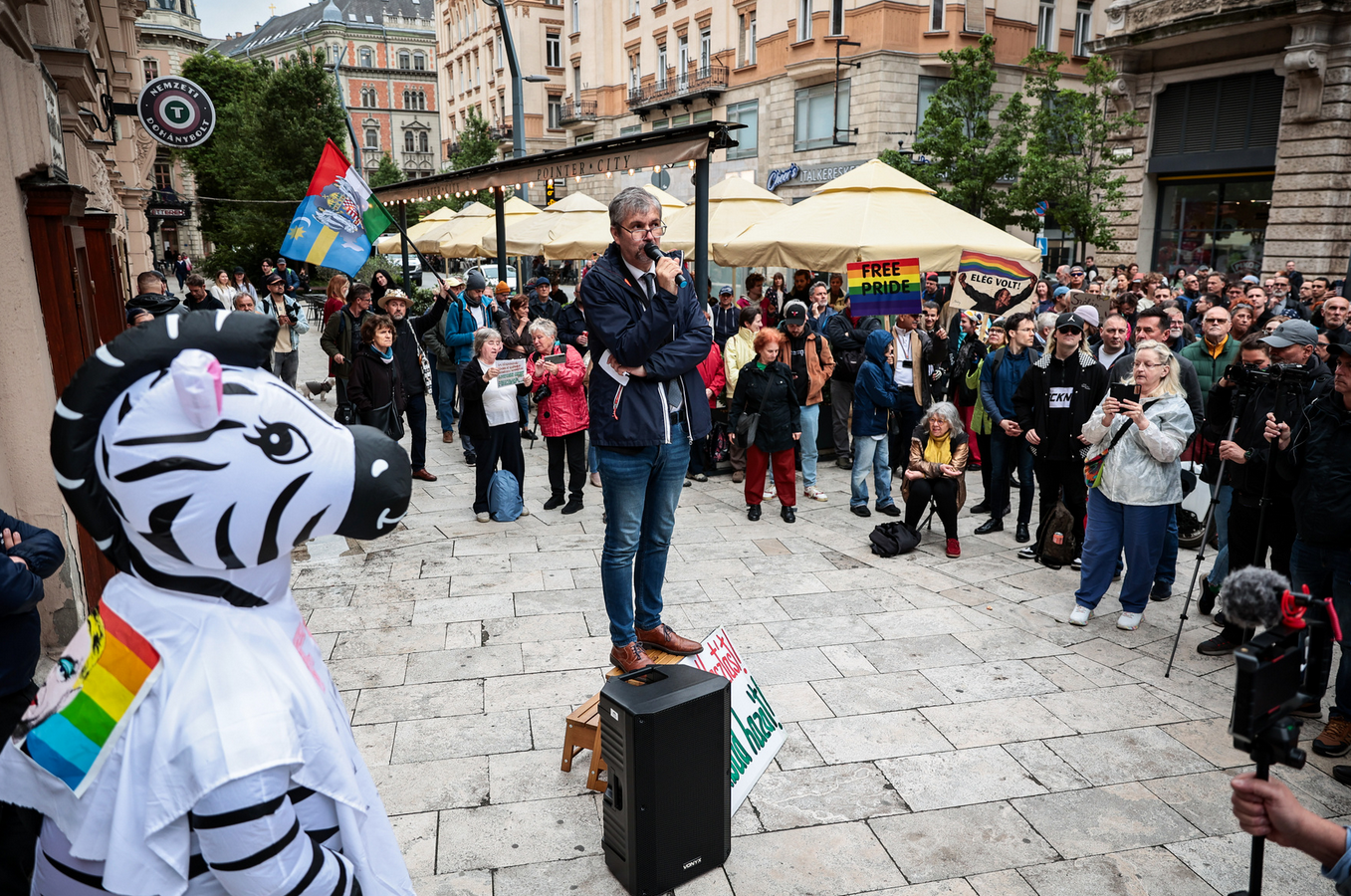 Elmondta azt is, hogy a törvény, amely ellen tiltakoznak, nem a Pride betiltásáról szól, mert a kormányt “átkozottul nem érdekli, hogy arra mennyien mennek ki”, hanem majd az elcsalt választások miatt kirobbanó tüntetések eltiprására fog szolgálni.