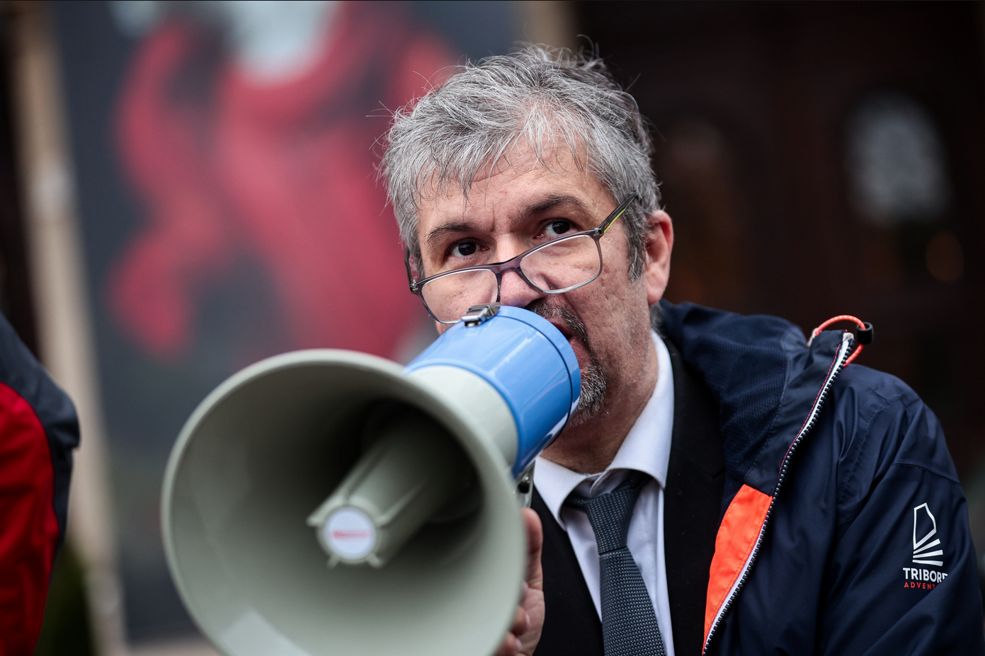 „Saját törvényeiket is megtiporva betiltják a tüntetéseinket” – mondta.