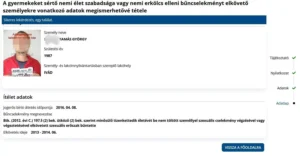 A nyilvános, Ügyfélkapuból elérhető pedofil-adatbázisban is szerepel a férfi