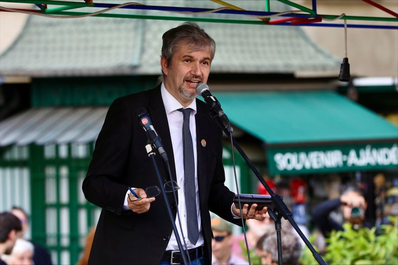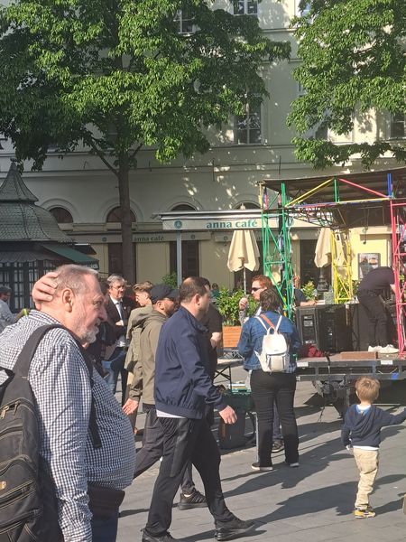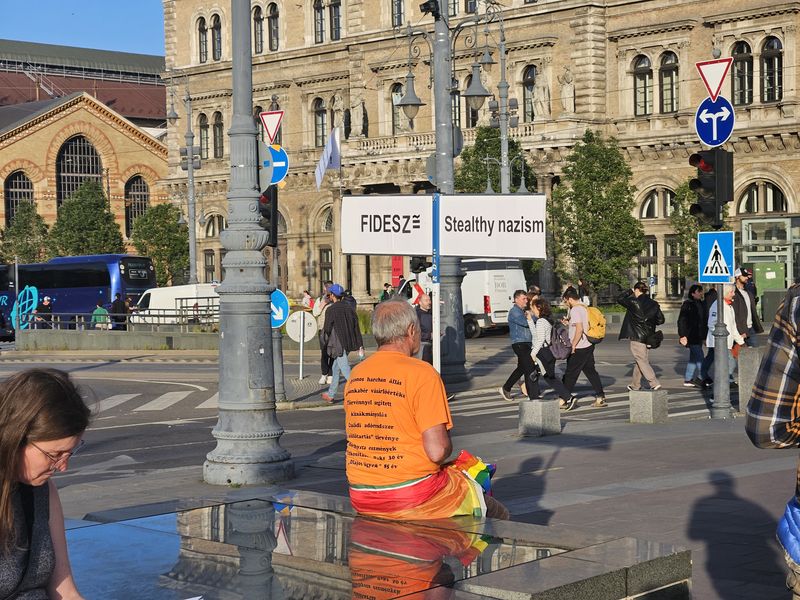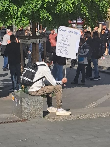 A Ferenciek terén általában egy kisszék vagy sámli volt szónoklatai állandó kelléke, most egy platón tartott beszédet a független képviselő, aki egyébként a Parlamentből érkezett a rendezvényre. Ott a parlament ruhatárában töltötte ki az alkotmánybíró-választás szavazólapját, ugyanis az ülésekről ki van tiltva.