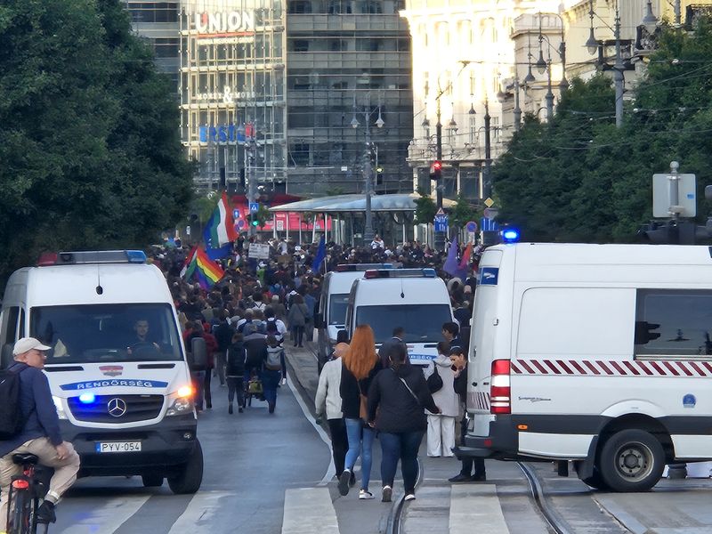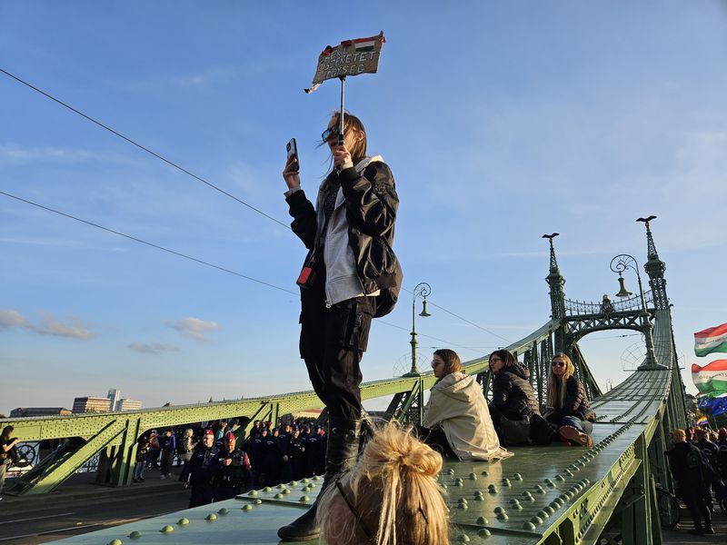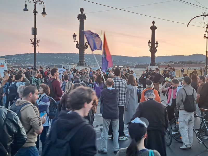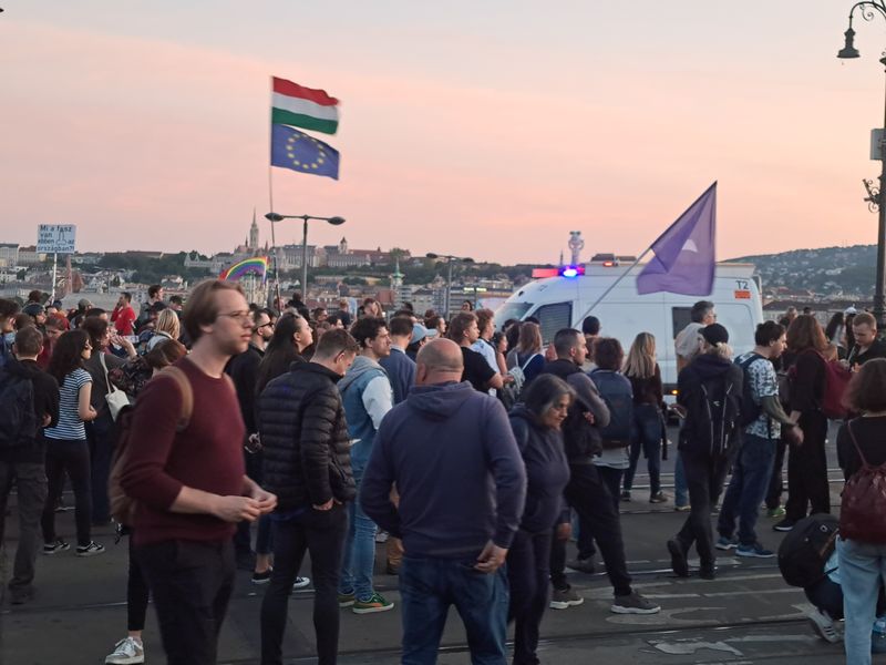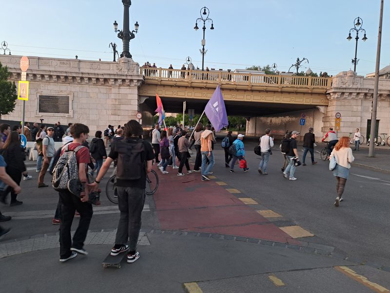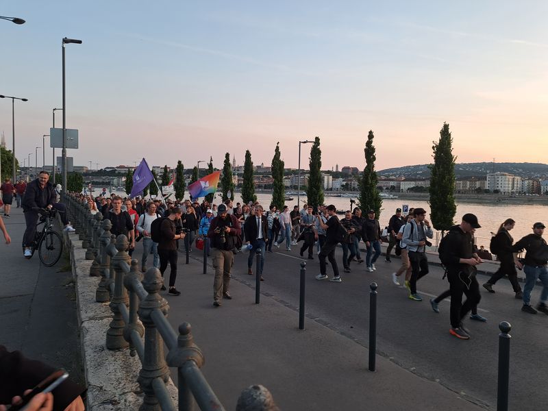Ezután a Margit híd felé vették az irányt, ám itt a rendőrség közölte, nem mehetnek el a Szuverenitásvédelmi Hivatalhoz, sőt, a Margit sziget lejárójának magasságában le is zárták a hidat.