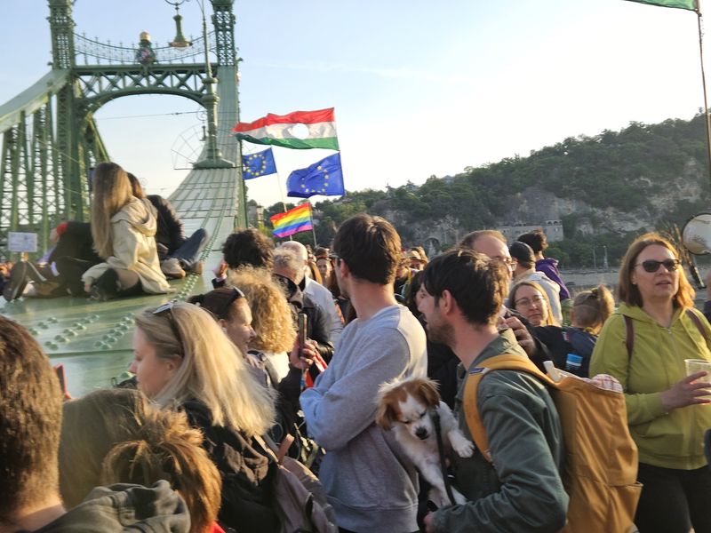 Hadházy felszólítására egyébként először március 18-án, a gyülekezési törvény módosítása után tüntettek és azóta minden áldott kedden demonstrál, általában vagy hídfoglalással vagy eltévedésnek álcázott forgalomlassító sétákkal feltuningolva.