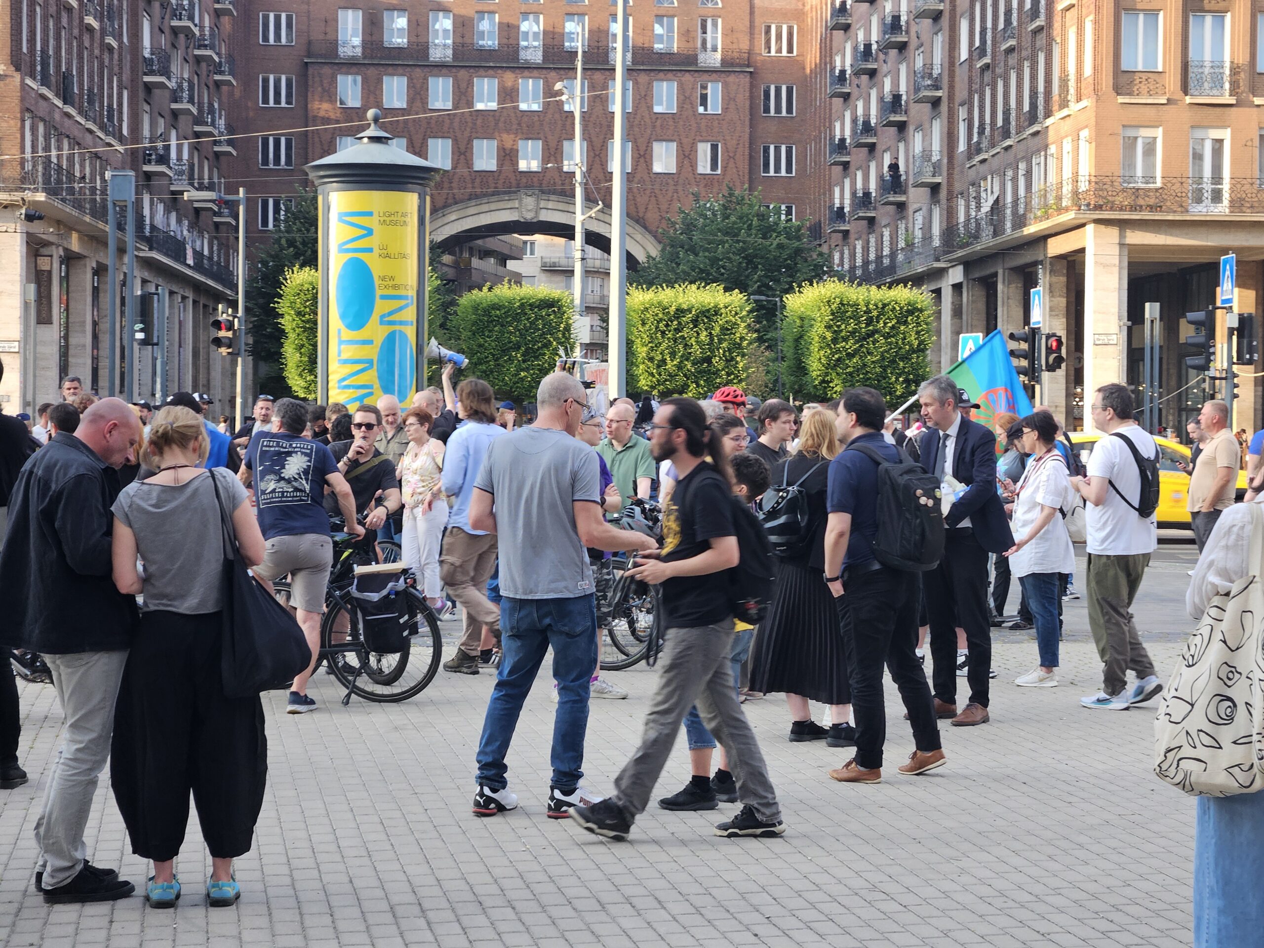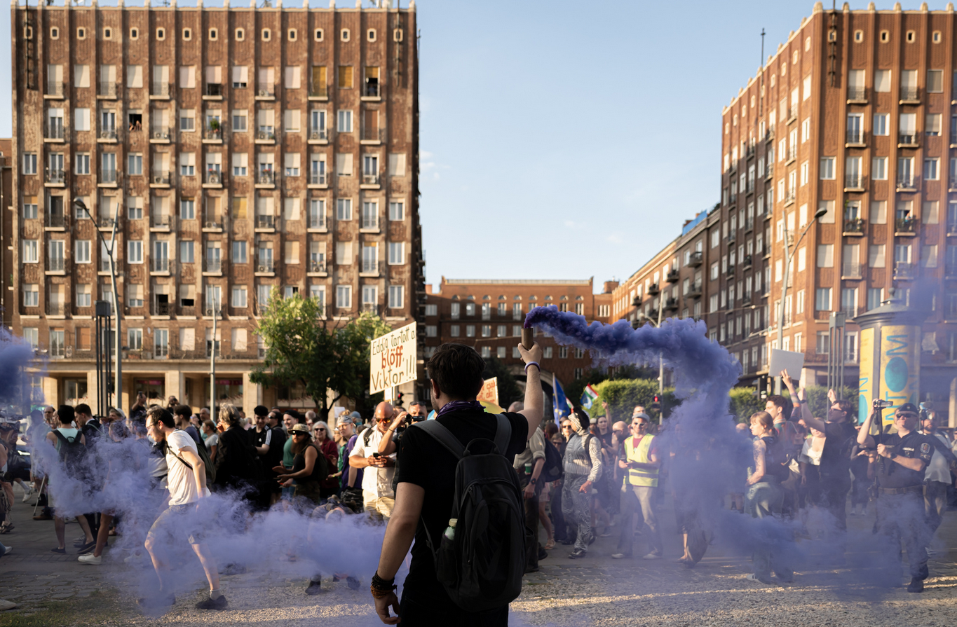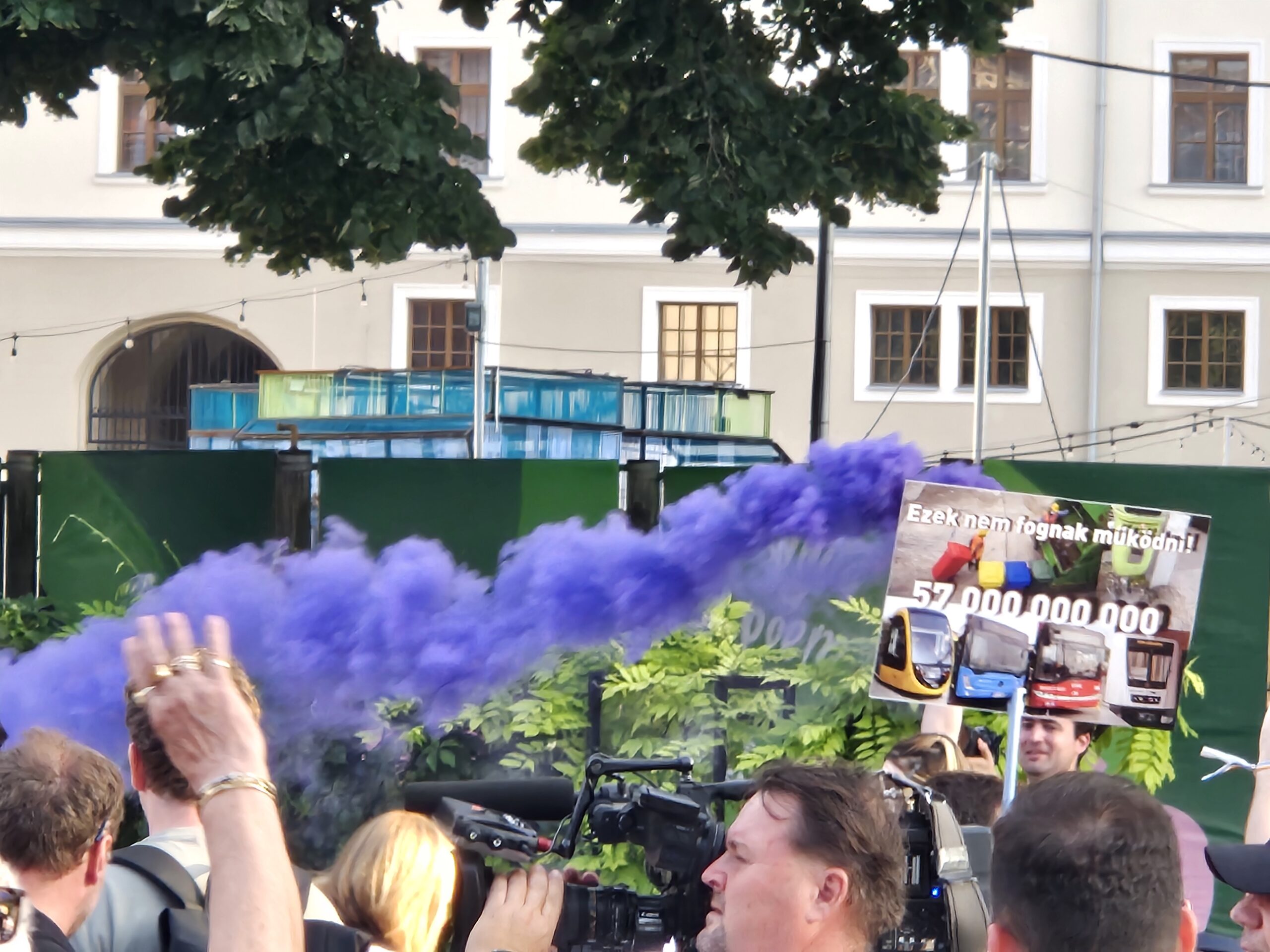 Mikor megérkeztek a Városháza park elé, a Momentum füstgyertyákat gyújtott, Hadhézy pedig rögtönzött szónoklatot tartott, amelyben kiemelte, hogy