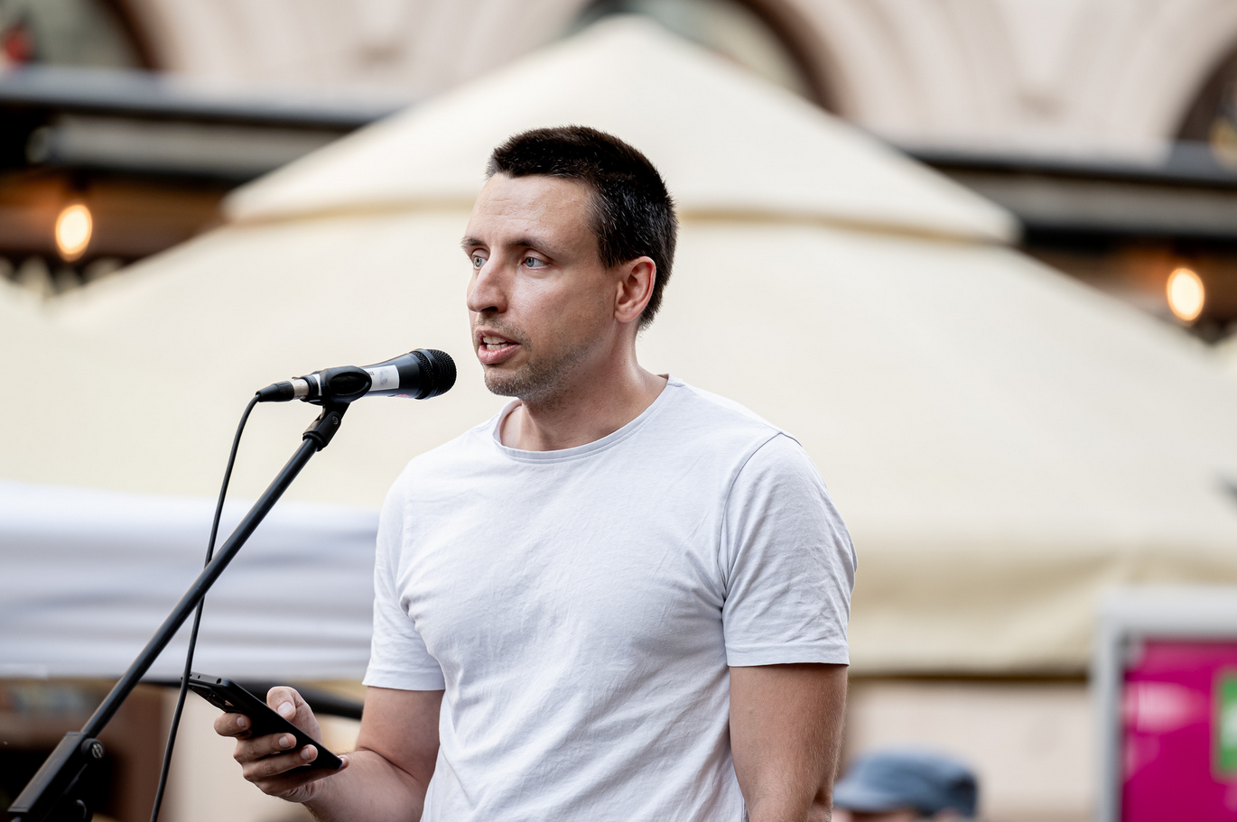 Az első felszólaló a zene előtt Bíró Dénes slam poetry művész volt.