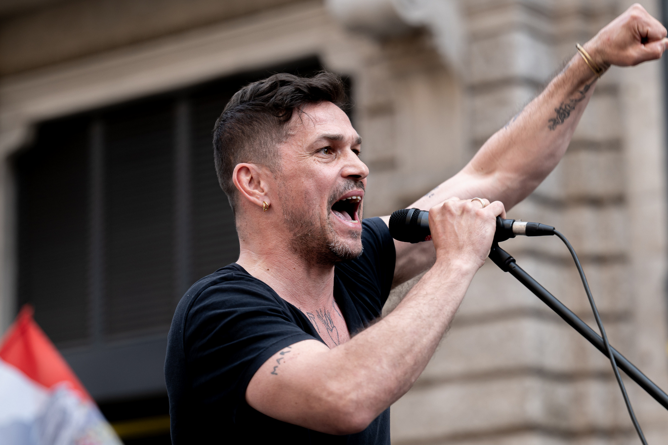 – mondta, ezek után pedig a magyar kormány bűneit vette sorra, mint például azt, hogy a szakmát „leszarva” Munkácsy-díjat ad egy giccsfestőnek, vagy hogy a rendőrség egy akciója során megölt egy embert, és annak semmi következménye nem lett.