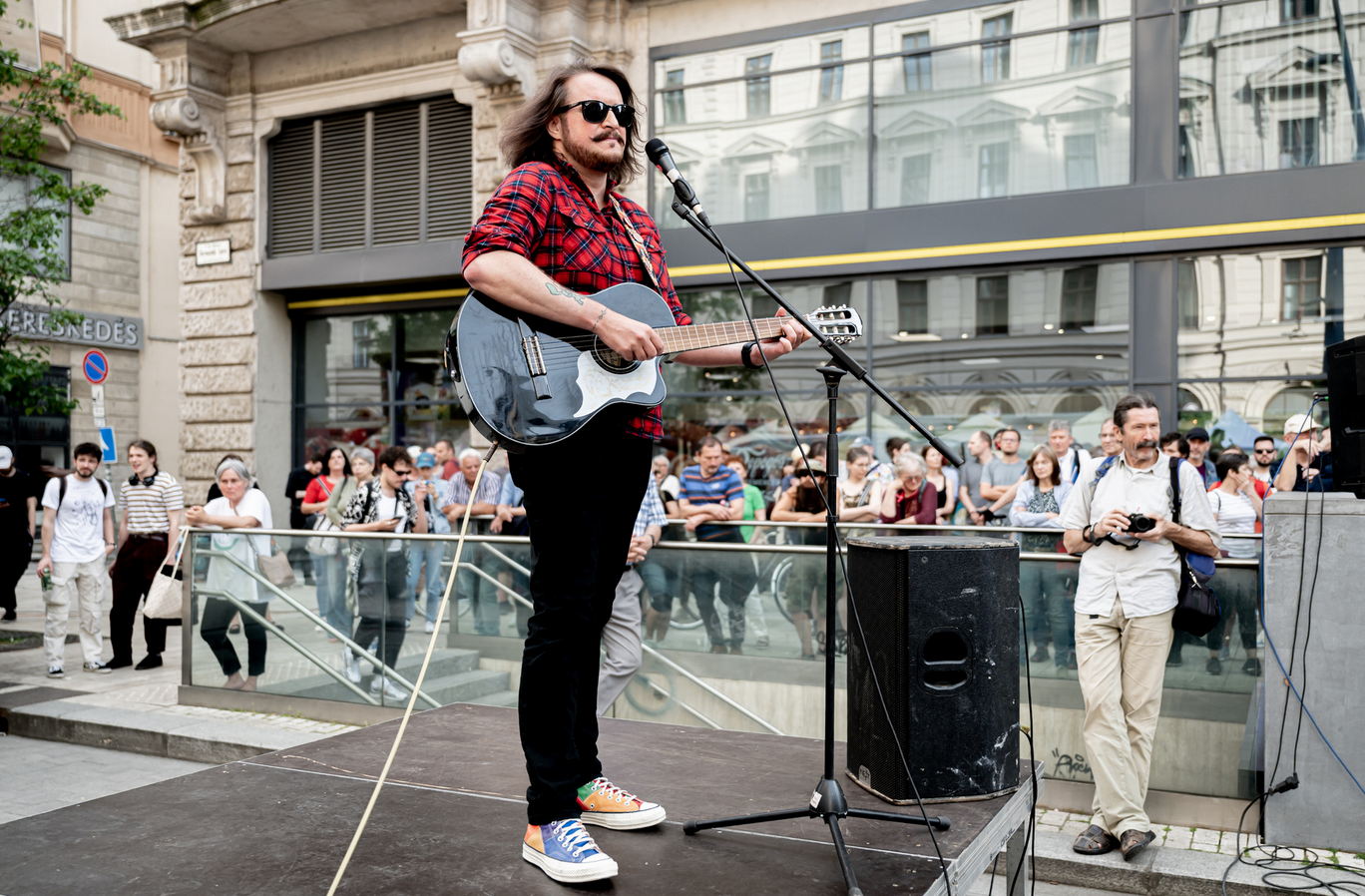Következett a beígért zenei blokk, ugyanis Gimpel Tamás zenélt a tömegnek, ezalatt pedig befutottak a Momentumosok is.