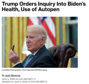 A kiadvány szerint Trump elrendelte annak kivizsgálását, hogy a Biden-kormányzat munkatársai összejátszottak-e abban, hogy az egészségi állapotára vonatkozó információkat eltitkolják a nyilvánosság elől. Egyúttal felmerült az is, hogy az elnök tudta nélkül, automatikus aláírással bármilyen végrehajtási intézkedést hoztak.