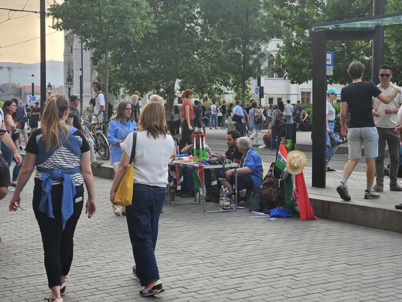 Elég sok árus is megjelent a tüntetésen, kihasználva a jó időt és a meleget. A demonstrálók csapolt sört és perecet is tudtak vásárolni, anélkül, hogy elhagynák a teret, de csúcsra járt a közeli Spar, a vendéglátó helyek, és kezdés után nem sokkal már a Szamosban is elfogyott a fagyi. A 2-es metró kijárata felé és a Kossuth tér több pontján a szervezők vizet osztottak a tüntetőknek.