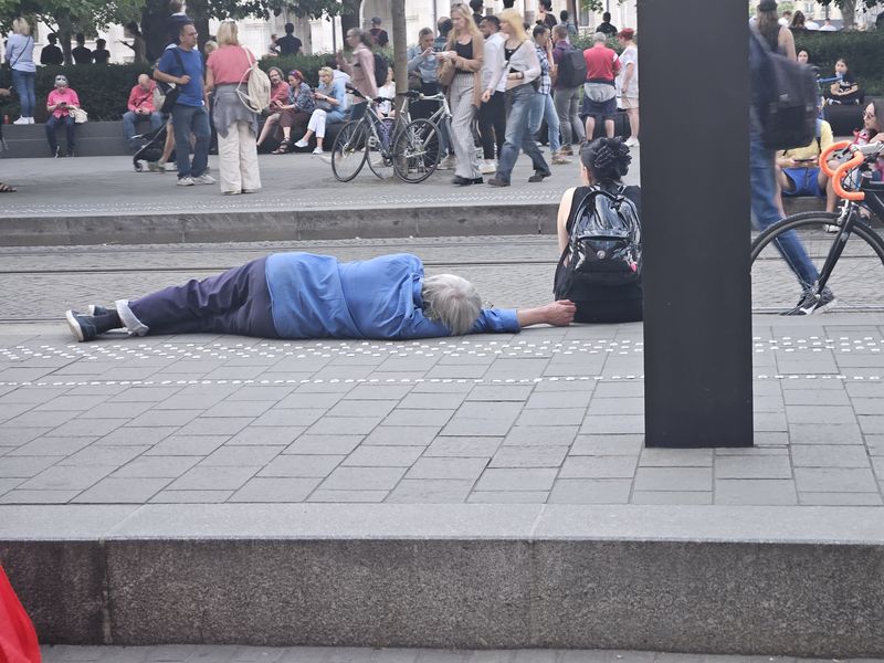 Eközben a pesti hídfőnél egy magányos tüntető leült a villamossínre, és invitálta az embereket, üljenek mellé, de ehhez senki nem kapott kedvet.