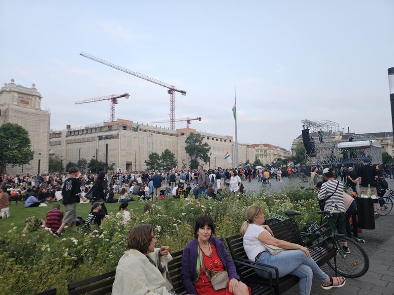 Maga a rendezvény sokkal inkább piknikre hajaz, semmit elégedteln emberek dühös tüntetésére, ugyanis a Rákóczi-szobor körüli füves részen sokak piknikeztek, ettek-ittak, volt, aki futárral rendelt pizzát. Sőt, volt aki a laptopját elővéve nekiállt dolgozni, mások pedig kifeszített függőágyban vagy a villamos sínek mentén fekve hallgatták a beszédeket.