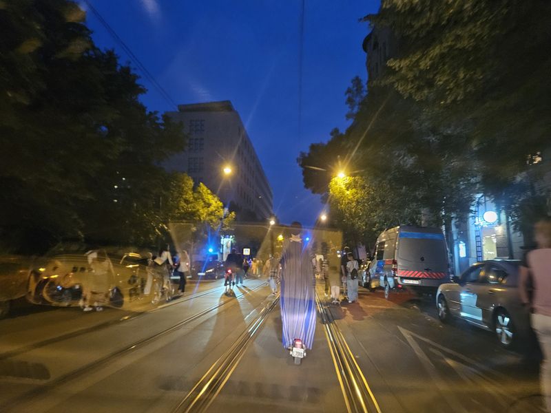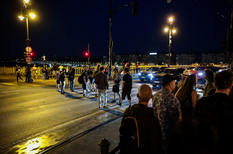 El is indultak a hídon a budai oldal felé, majd megérkeztek a készenléti rendőrök, és a szigeti lejáró magasságában leterelték az embereket az útról, és sorfalat álltak. Az autó- és villamosforgalom csak pár percre állt meg, aztán gond nélkül haladt tovább.