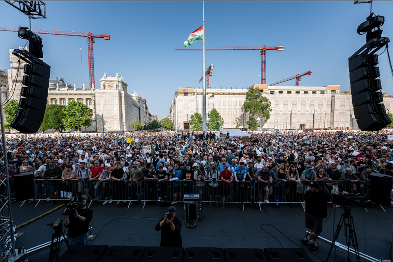 „Akiknek elege van belőletek, az maga a nemzet. Igen, mi vagyunk, a magyar emberek. Se nem háborúpártiak, se nem poloskák, se nem kémek, se nem hazaárulók, legfőképpen nem agymosott Orbán-hívők. Szabad emberek, akik ha a szabadságról van szó, tapodtat sem hátrálnak” – zárta beszédét a humorista.