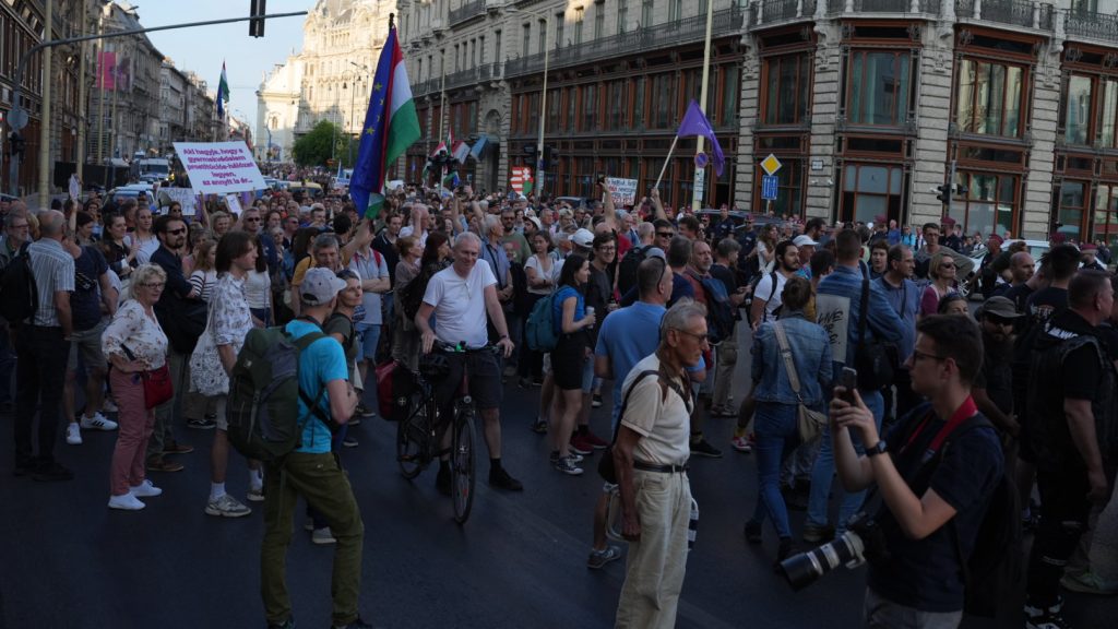 Beszéde után felszólította a tüntetőket, hogy együtt csatlakozzanak az ügyészség épülete előtt szerveződő spontán demonstrációhoz. A tüntetők az úttesten indultak meg, de a rendőrség egy ponton a Szabad sajtó útján útjukat állták, és arra kérték a tüntetőket, hogy a járdán vonuljanak tovább. A tüntetést szervező országgyűlési képviselő ezt a tömeg méretére hivatkozva megtagadta, így a forgalmat az Erzsébet hídon sikerült korlátozniuk, és a rendőrség lezárta a hidat.